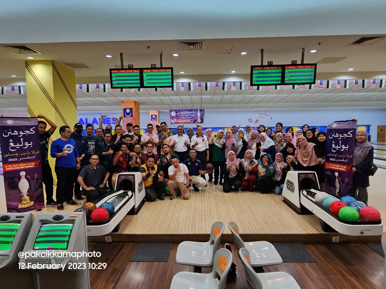 12 Februari 2023 (KUANTAN) - Buat julung kalinya, BAKKIP UnIPSAS menganjurkan Kejohanan Bowling Piala Naib Canselor 2023. Seramai 60 Anggota kerja UnIPSAS mengambil bahagian. Ucapan aluan dimulakan oleh Pengerusi BAKKIP, YH Dato Dr Hj Ahmad Munawar bin Abdul Jalil dan seterusnya dirasmikan oleh Naib Canselor UnIPSAS YH Prof. Madya. Dato' Dr. Haji Mohd Zawavi bin Zainal Abidin. " Saya amat bangga kerana (BAKKIP) menganjurkan program seperti ini dan menggunakan tulisan jawi pada kain rentang kojohanan bowling. Menang atau kalah bukanlah matlamat utama, tetapi ukhwah dan silaturrahim sesama anggota kerja dapat dipupuk melalui kejohanan sukan seperti ini."