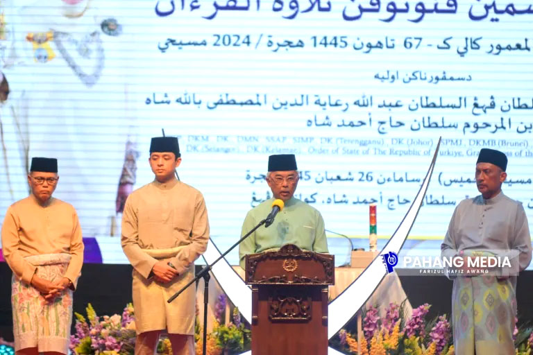 Baginda bertitah demikian pada Majlis Perasmian Penutup Tilawah Al-Quran Peringkat Negeri Pahang Darul Makmur Kali Ke-67 Tahun 1445 Hijrah bersamaan 2024 Masihi di Dewan Jubli Perak Sultan Haji Ahmad Shah di sini semalam.