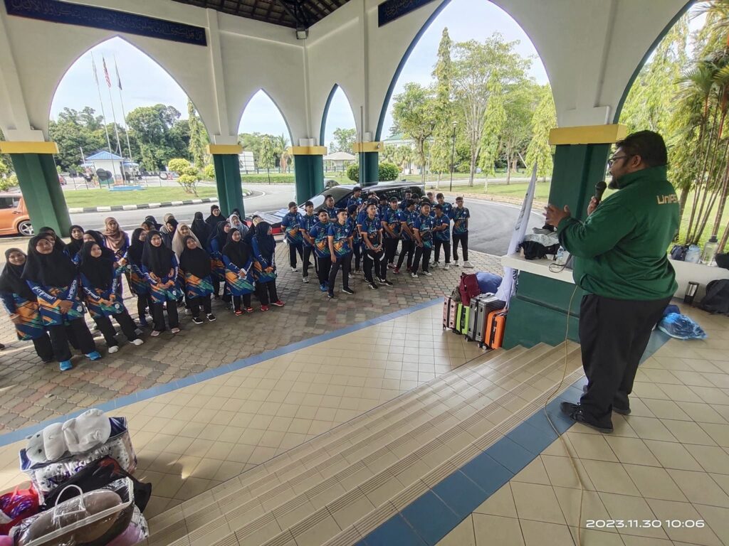 KUANTAN, 30 November 2023 - Amanat NC YH. Prof. Madya Dato’ Dr. Haji Mohd Zawavi bin Zainal Abidin, membakar semangat atlet UnIPSAS ke kejohanan MASISWA Zon Timur 2023 , 1 Disember - 4 Disember 2023 di Kota Bahru, Kelantan. Kontinjen UnIPSAS seramai 60 orang atlet (37W/23L) dan 10 orang pegawai mewakili pasukan Bola Tampar, Futsal, Bola Jaring, Ping Pong, Badminton dan Catur.