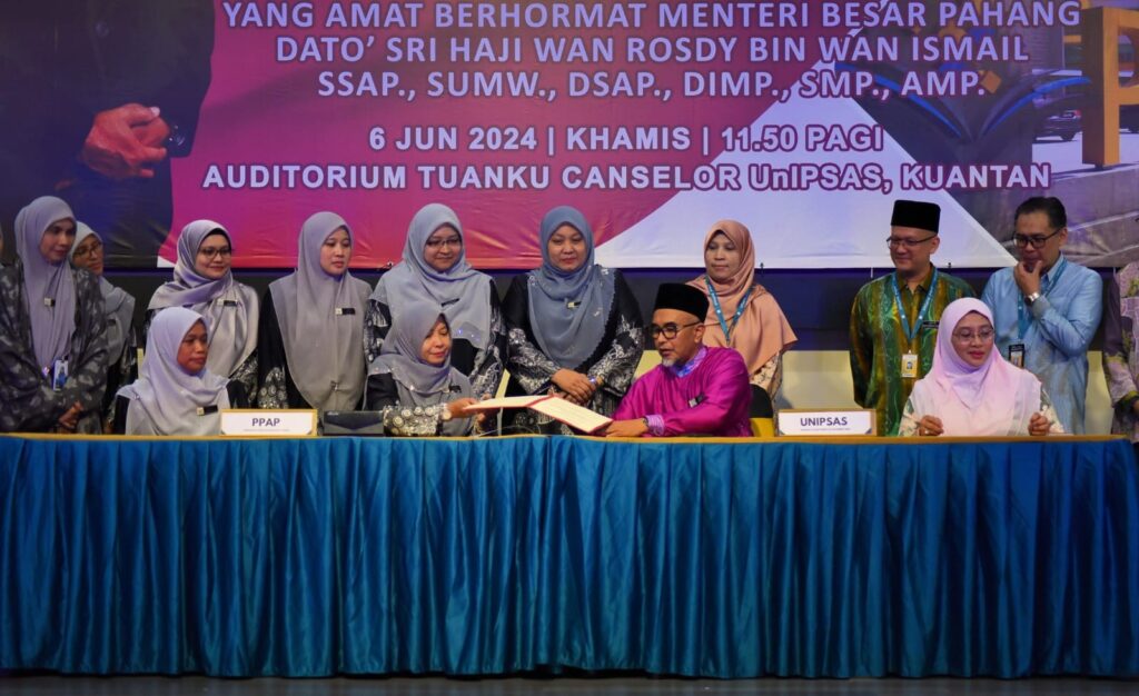 KUANTAN, 6 JUN 2024 - Selesai Majlis Menandatangani MoU dengan Perbadanan Perpustakaan Negeri Pahang pada 06 Jun 2024, bersempena Seminar Perpustakaan di hati Masyarakat yang berlangsung di Auditorium Tuanku Canselor, UnIPSAS.