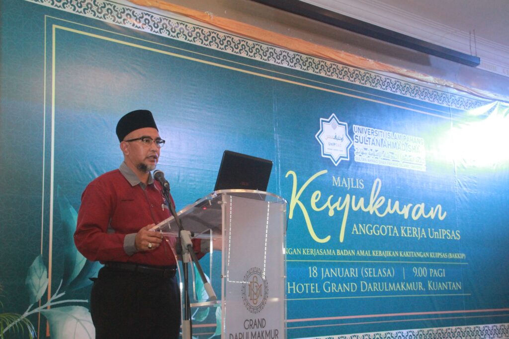 Beliau menyatakan demikian ketika menyampaikan Amanat Naib Canselor sempena Majlis Kesyukuran Anggota Kerja UnIPSAS yang diadakan di Dewan Astana, Hotel Darulmakmur Kuantan.Program yang diadakan dengan kerjasama Badan Amal dan Kebajikan Kakitangan KUIPSAS (BAKKIP) itu turut menampilkan Ustaz Haslin Bahrim yang menyampaikan Ceramah Motivasi bertajuk “Minda Universiti Islam, Ciri-Ciri Pekerja Cemerlang”.