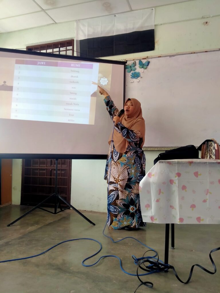 Ustaz Ainuddin Kamaruddin dan Ustazah Seriayuna Sa'don Zubir dari Institut Jawi UnIPSAS hadir menyampaikan perkongsian pada hari pertama manakala Ustazah Nurizan Baharum dan Ustazah Siti Nora'aeshah Zakaria hadir pada hari kedua. Para peserta telah didedahkan dengan kemahiran menulis dan menyambung huruf dalam tulisan Jawi, mengenal padanan huruf Rumi-Jawi dan beberapa kaedah asas dalam ejaan Jawi terkini.