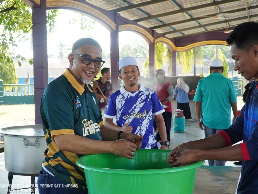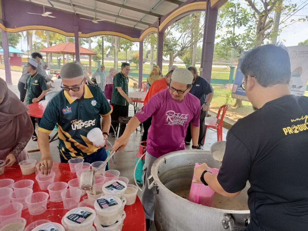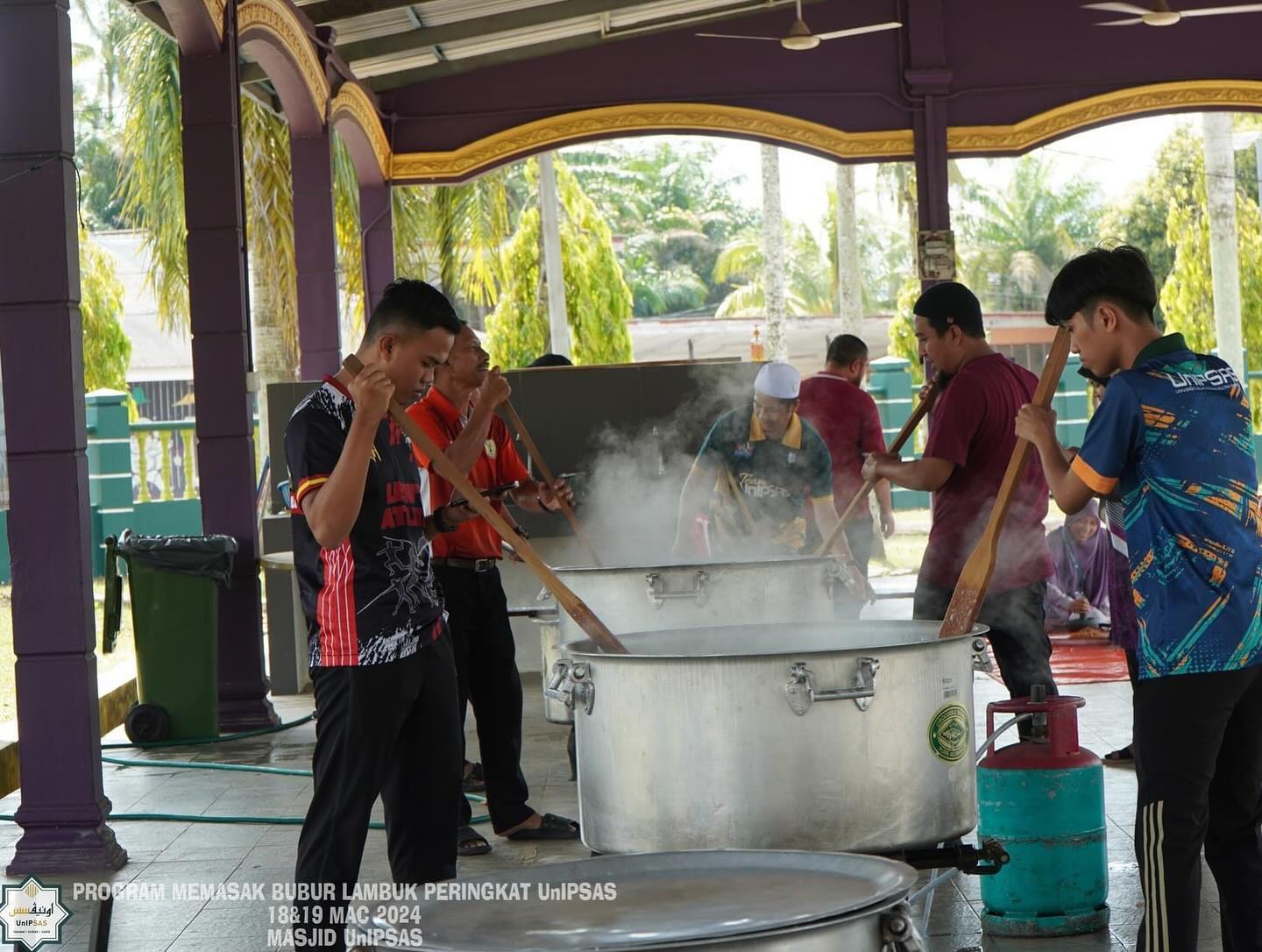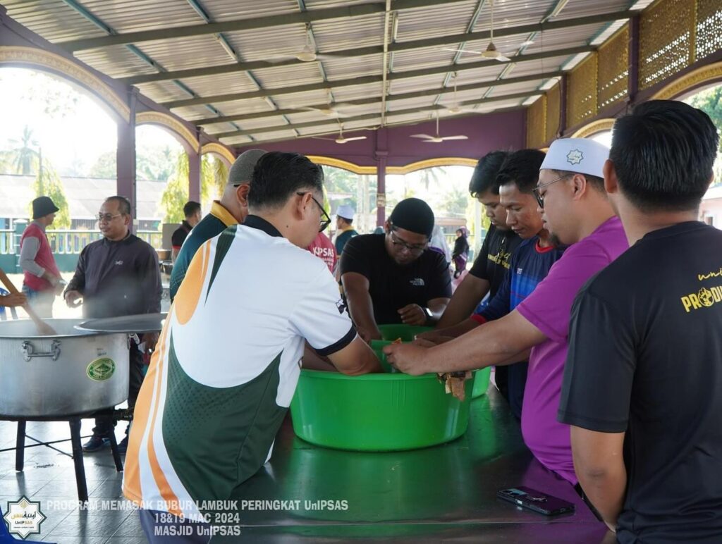 Terdahulu pegawai dan kakitangan UnIPSAS telah bergotong-royong memasak bubur lambuk sebelum mengagihkan kepada komuniti. Naib Canselor UnIPSAS, YH Prof. Datoโ Dr. Haji Mohd Zawavi Bin Zainal Abidin turut hadir membantu dalam proses penyediaan bubur lambuk tersebut.