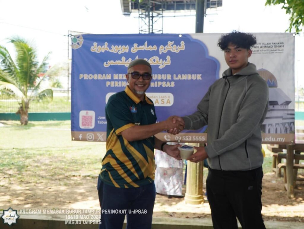 KUANTAN, 19 MAC 2024 - Sempena kehadiran bulan Ramadan yang mulia ini, UnIPSAS mengadakan Program Memasak Bubur Lambuk Peringkat UnIPSAS yang bermula pada jam 8 pagi di perkarangan Masjid UnIPSAS.