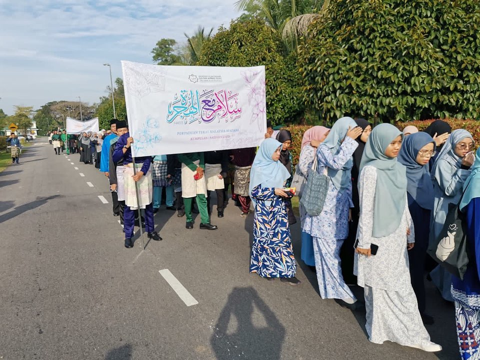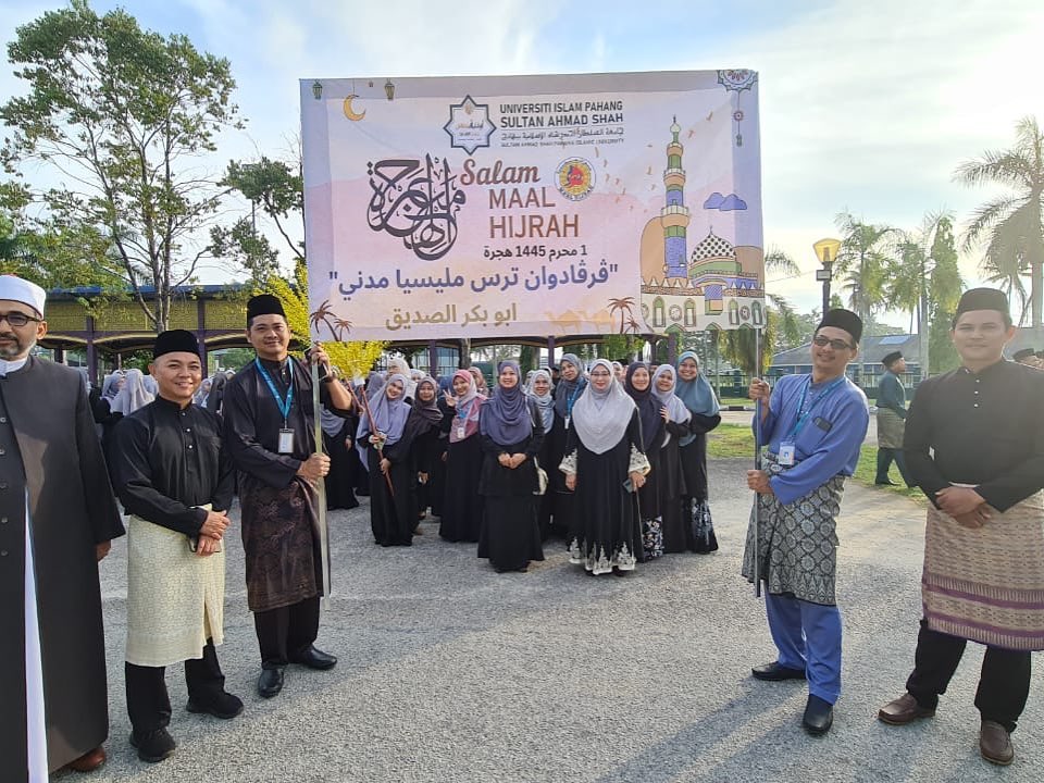 KUANTAN, 21 Julai 2023 / 3 Muharram 1445H - Pusat Islam UnIPSAS telah menganjurkan program perarakan sempena Sambutan Maal Hijrah 1445H peringkat Universiti pada hari ini. Perarakan ini telah disertai hampir 800 peserta dari 11 kontinjen yang terdiri daripada Fakulti Pengajian, jabatan-jabatan pentadbiran dan persatuan pelajar yang ada di UnIPSAS.