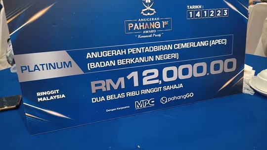 KUANTAN, 15 DISEMBER 2023 - UnIPSAS telah menerima Anugerah Platinum bagi kategori Anugerah Pentadbiran Cemerlang (APEC) dalam Majlis Anugerah Pahang 1st yang disampaikan oleh YAB Menteri Besar Pahang. Anugerah ini merupakan pengiktirafan tertinggi kerajaan negeri dalam kecemerlangan tadbir urus institusi dan agensi di negeri Pahang.